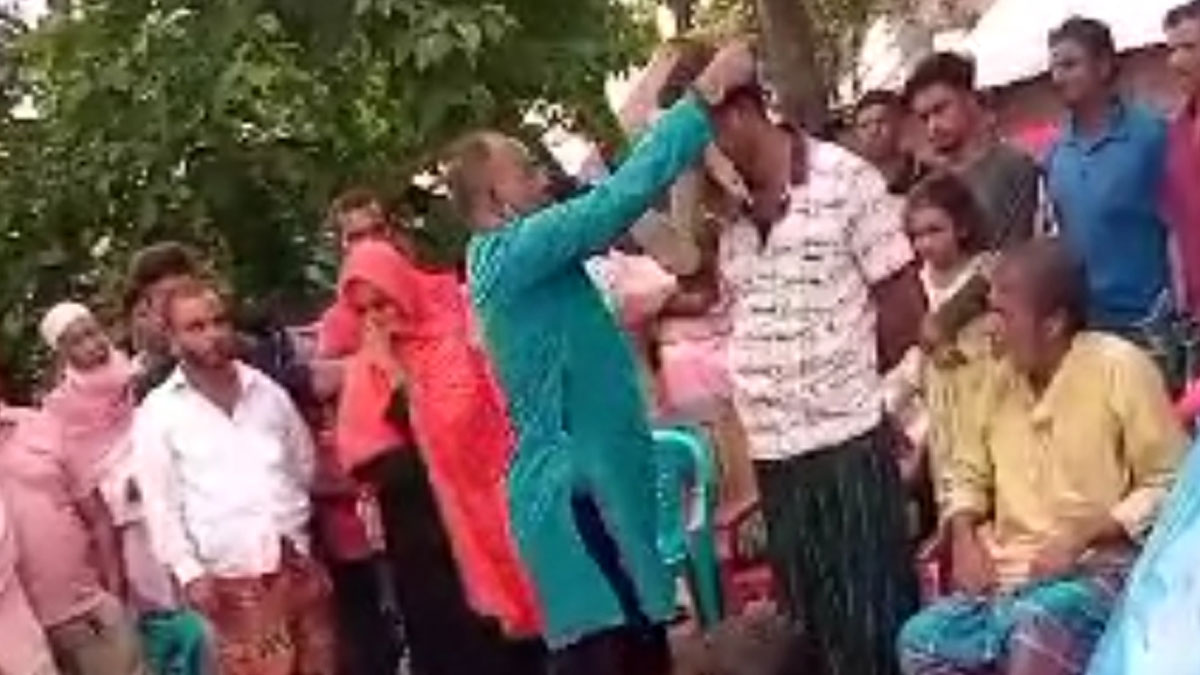 পরকীয়ার অপবাদ দিয়ে জুতার মালা পরিয়ে ঘোরালেন চেয়ারম্যান