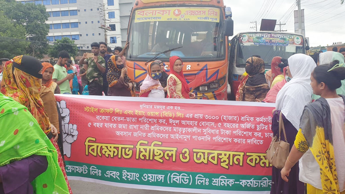 গাজীপুরে বকেয়া বেতনের দাবিতে শ্রমিকদের সড়ক অবরোধ