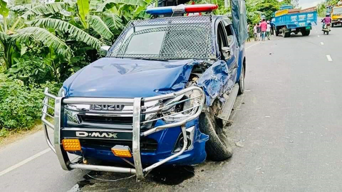 পথিমধ্যে বিরামপুর উপজেলার চন্ডীপুর এলাকায় একটি ট্রাকের সঙ্গে সংঘর্ষ হয়। এ সময় পুলিশের পিকআপে থাকা তিন পুলিশ সদস্য আহত হন। তাদেরকে উদ্ধার করে বিরামপুর উপজেলা স্বাস্থ্য কমপ্লেক্স ভর্তি করা হয়েছে। সেই সঙ্গে দুর্ঘটনাকবলিত ট্রাকটি জব্দ করা হয়েছে।