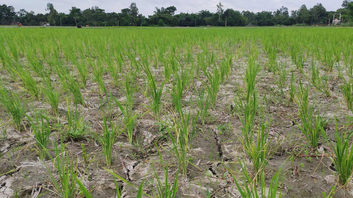 গত কয়েকদিনে জেলার সদর, চিরিরবন্দর, পার্বতীপুর ও খানসামা উপজেলা ঘুরে দেখা যায়, বর্ষার ভরা মৌসুম হলেও চাষ করা জমিতে মাটি সাদা হয়ে ফেটে গেছে। মাটি ফেটে হয়েছে চৌচির। রোপণকৃত চারা রোদের তাপে পুড়ে গেছে। ধান গাছের পাতা হয়েছে লালচে-হলুদ। কেউ কেউ শ্যালো পাম্প দিয়ে পানি তুলে ক্ষেত ভিজিয়ে দিচ্ছেন। কাঙ্ক্ষিত বৃষ্টি না পেয়ে প্রায় পুরোটাই সেচ নির্ভর হয়ে পড়েছে।
