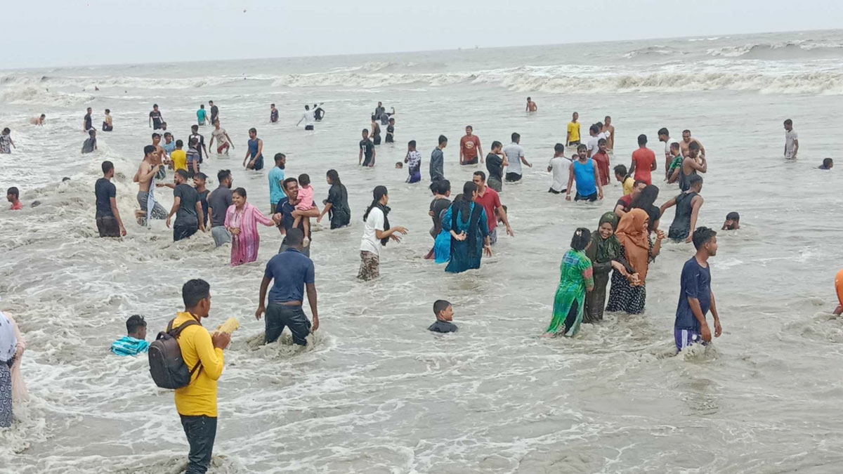 সৈকতের বিভিন্ন পয়েন্ট ঘুরে দেখা যায়, উত্তাল সমুদ্রেই শত শত পর্যটক সাগরে গোসল করতে নেমেছেন। এ সময় বেসরকারি লাইফগার্ড কর্মীদের বালুচরে দাঁড়িয়ে বাঁশি বাজিয়ে পর্যটকদের উঠে আসার জন্য আহ্বান জানাতে দেখা গেছে। এ ছাড়া উত্তাল সাগরে নামতে নিষেধ করলেও সেদিকে কারও কোনো নজর নেই।