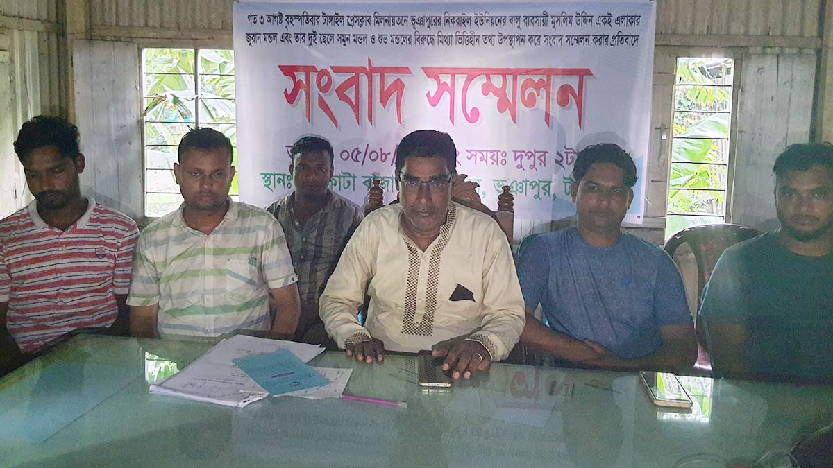 টাঙ্গাইলের ভূঞাপুরে ইউনিয়ন আওয়ামী লীগ নেতা ও তার দুই ছেলের বিরুদ্ধে মিথ্যা মামলা ও হয়রানির করার প্রতিবাদে সংবাদ সম্মেলন করা হয়েছে। শনিবার দুপুরে উপজেলার মাটিকাটা বাজারের আওয়ামী লীগ কার্যালয়ে সংবাদ সম্মেলন করে এমন অভিযোগ করেন উপজেলার নিকরাইল ইউনিয়ন আওয়ামী লীগের সহ-সভাপতি জুরান মন্ডল।