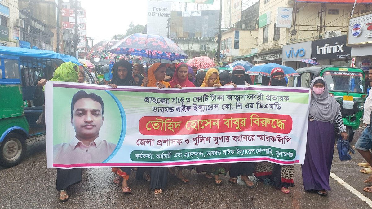 স্মারকলিপিতে উল্লেখ করা হয়, আমরা সুনামগঞ্জের ডায়মন্ড লাইফ ইন্স্যুরেন্স কোম্পানিতে ৪০ জন কর্মকর্তা ও কর্মচারী কাজ করে আসছি। আমাদের অধীনে অত্র জেলার প্রায় ২ হাজার গ্রাহক সৃষ্টি করে প্রায় সাড়ে ৩ কোটি টাকা গ্রাহকদের নিকট থেকে এনে ডায়মন্ড লাইফ ইন্স্যুরেন্স কোম্পানি সুনামগঞ্জ শাখার ডিএমডি তৌহিদ হোসেন বাবুর কাছে অফিশিয়াল নিয়ম অনুযায়ী হস্তান্তর করি। সে আমাদের ঊর্ধ্বতন কর্মকর্তা হওয়ায় অধিকাংশ সময়েই বিনা রশিদে ডায়মন্ড লাইফ ইন্স্যুরেন্স কোম্পানির নামে টাকা জমা রেখে আসি। আমরা তার অধীনস্ত কর্মকর্তা ও কর্মচারী হওয়ায় সে আমাদের নিকট থেকে প্রায় সময়ই যারা লাইফ ইন্স্যুরেন্স করেছেন সেই গ্রাহকদের টাকা বিনা রশিদে গ্রহণ করেছে। তাছাড়া কর্মকর্তা ও কর্মচারীদের প্রমোশন দেওয়ার নামে ব্যাংকের হিসাবের খালি চেক ও ১০০ টাকার স্ট্যাম্পে টাকার অংক না বসিয়ে স্বাক্ষর নেন ঊর্ধ্বতন কর্তৃপক্ষের কাছে পাঠাবে বলে। পরবর্তীতে হেড অফিস থেকে আমরা জানতে পারি ডিএমডি বাবুর সব কার্যক্রম ভুয়া। পরে তার কাছে গ্রাহকের টাকা ফেরত চাইলে পূর্বের নেওয়া খালি চেক ও স্ট্যাম্প দিয়ে আমাদের বিরুদ্ধে মামলা ও প্রাণনাশের হুমকি দেয়। প্রাণ বাঁচাতে আমরা থানায় জিডিও করেছি।