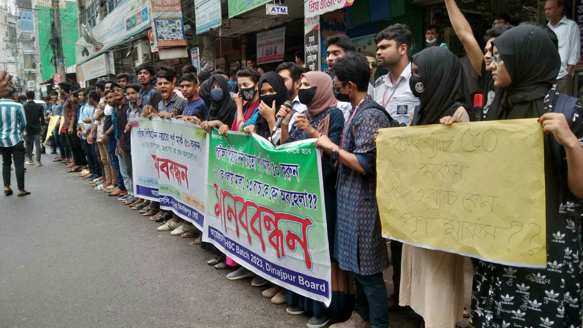 এইচএসসি ও সমমান পরীক্ষার তারিখ পেছানো এবং ৫০ নম্বরের পরীক্ষা নেওয়ার দাবিতে রংপুরে মানববন্ধন ও বিক্ষোভ মিছিল অনুষ্ঠিত হয়েছে।