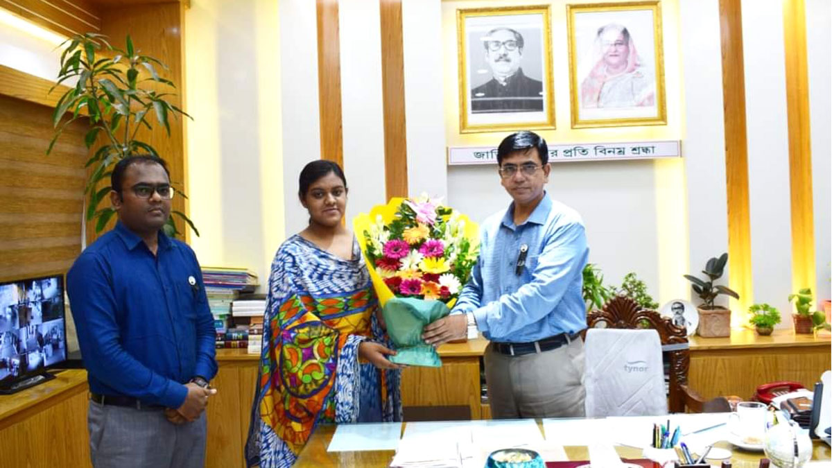 জেলা প্রশাসক নিজ কার্যালয়ে ফালগুনী দাসকে ফুলেল শুভেচ্ছা জানান