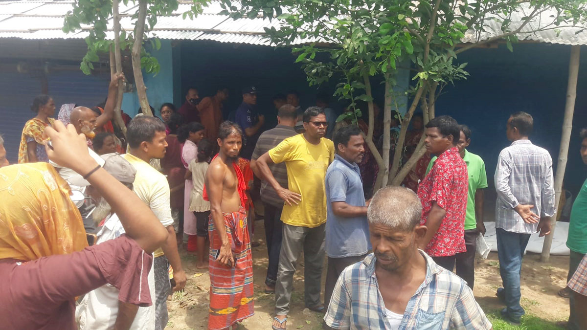দিনাজপুর সদর উপজেলার পশ্চিম শিবরামপুর খ্রিস্টান পাড়ার ফ্রান্সিস মুর্মুর বাড়িতে পুলিশ ও নিহতের স্বজনরা