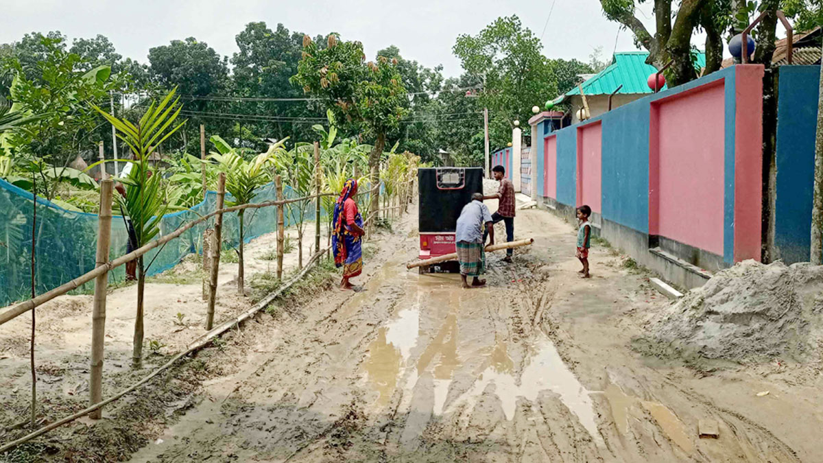 বন্ধ সড়কের নির্মাণকাজ, কাদায় ভোগান্তি