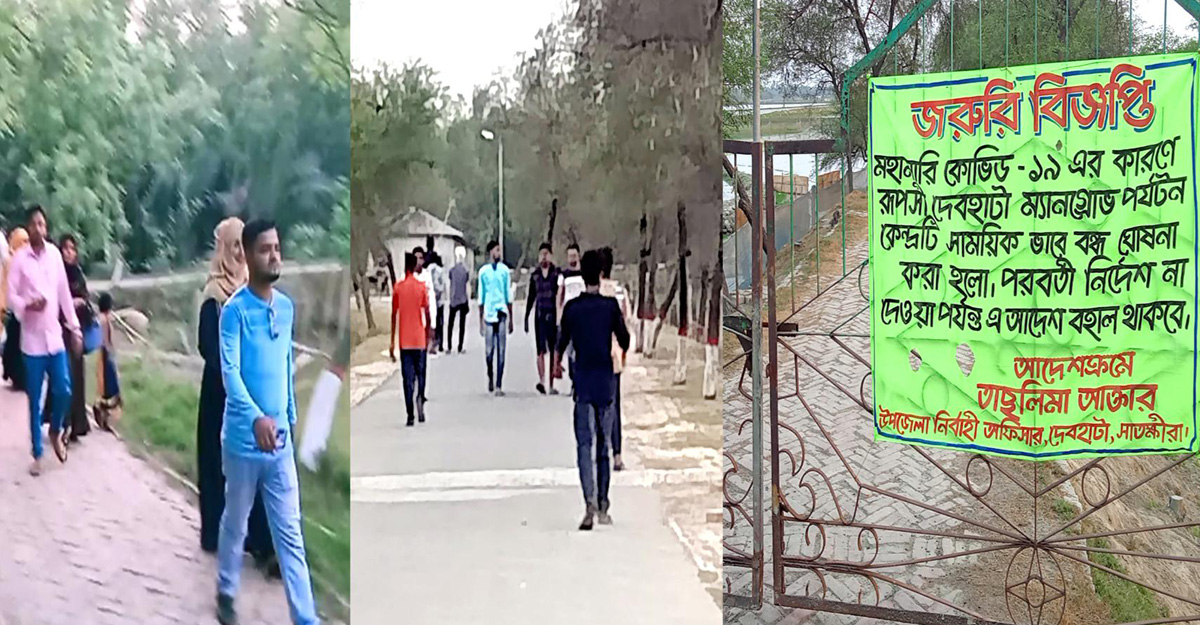 সাতক্ষীরায় জনসমাগম এড়াতে সভা-সমাবেশ নিষিদ্ধের পাশাপাশি সব পর্যটন কেন্দ্র পরবর্তী নির্দেশ না দেওয়া পর্যন্ত বন্ধ ঘোষণা করেছে জেলা প্রশাসন। সরকারি নির্দেশনা উপেক্ষা করে দেবহাটা উপজেলার রূপসী ম্যানগ্রোভ পর্যটন কেন্দ্রে অবাধে ঢুকতে দেওয়া হচ্ছে দর্শনার্থীদের।