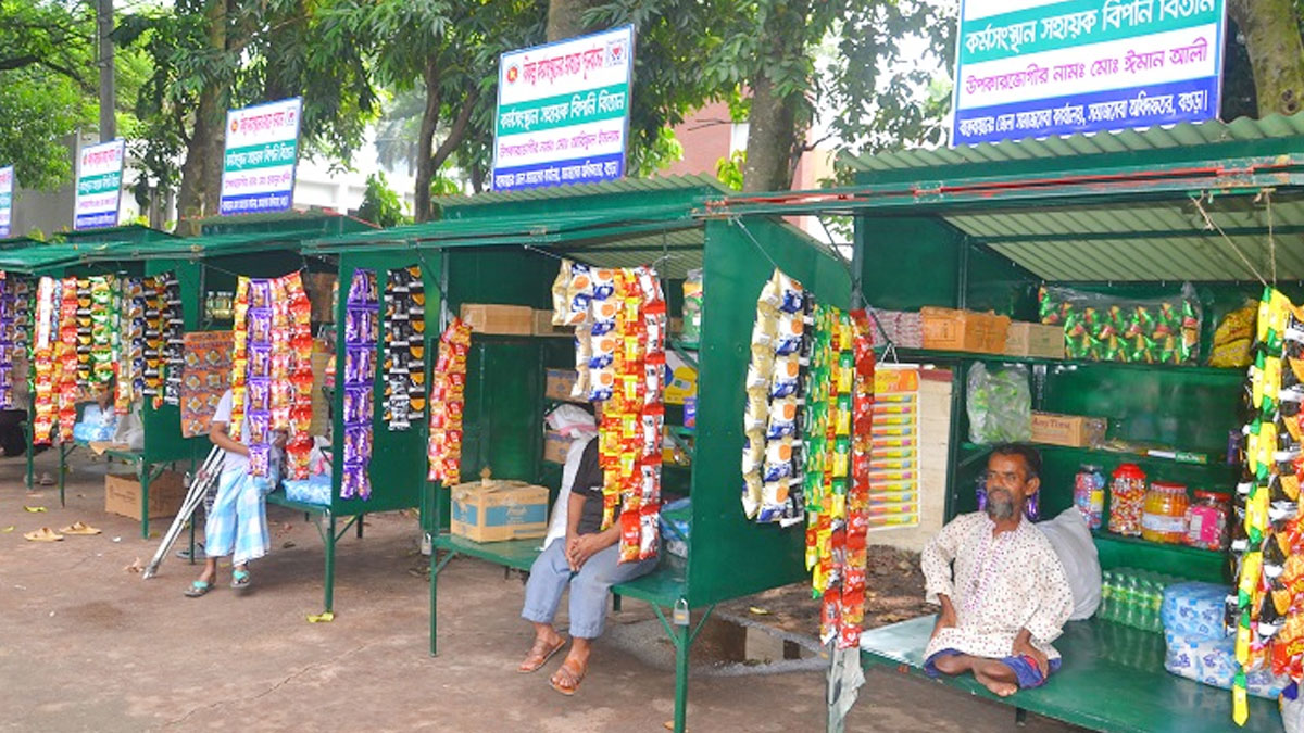 শারীরিক প্রতিবন্ধী হওয়ায় ভিক্ষাকেই জীবিকা হিসেবে নিতে হয়েছিল বগুড়ার শাজাহানপুরের ঈমান আলীকে। তবে মাঝ বয়সে এসে যেন নতুনভাবে বাঁচার অবলম্বন পেলেন। জেলা সমাজসেবা অধিদপ্তর থেকে তাকে পণ্যসহ দোকানঘর দেওয়া হয়েছে।