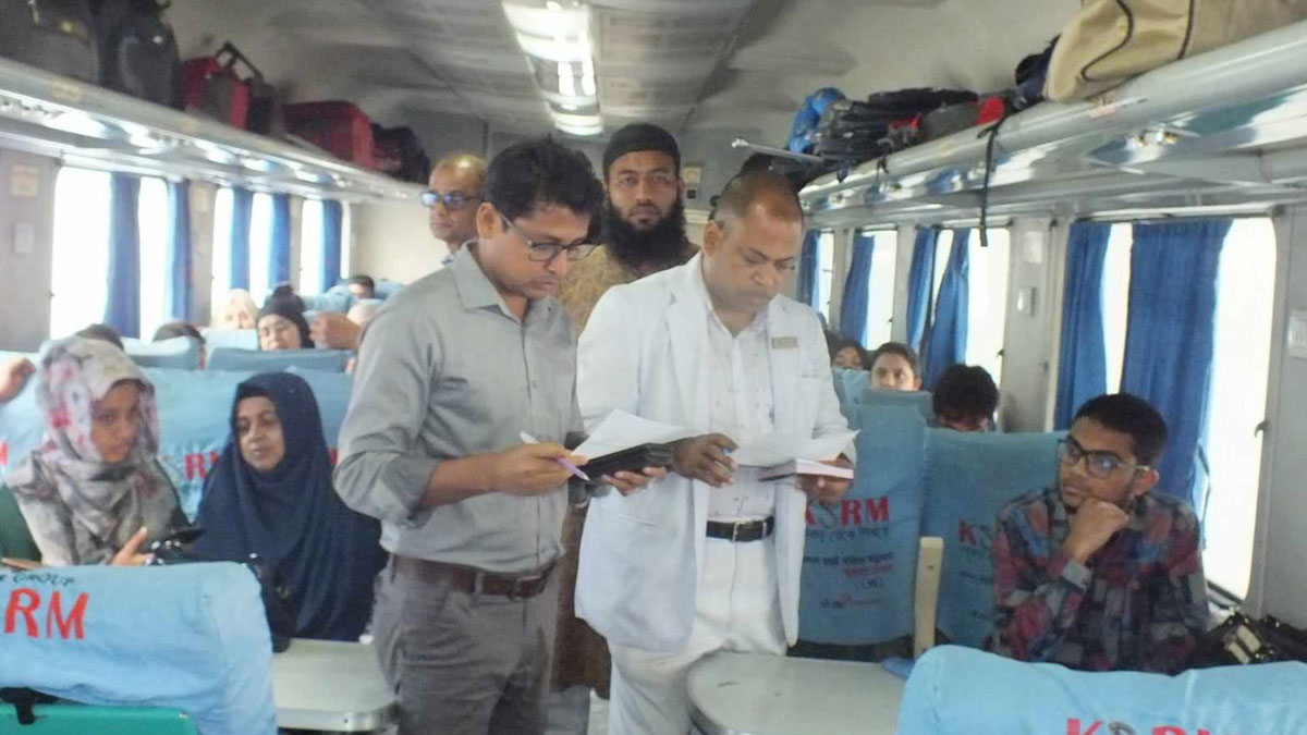 নাসির উদ্দিন বলেন, বৃহস্পতিবার (১৭ আগস্ট) আন্তঃনগর ট্রেনগুলোতে অনেকটা উপচে পড়া ভিড় লক্ষ্য করা গেছে। অনেক যাত্রী টিকিট ছাড়াই ট্রেনে চড়ে নিজেদের গন্তব্যস্থলে যেতে চান। আমরা সাধারণত বিনা টিকিটের যাত্রীদের পরবর্তী স্টেশনে শাস্তিস্বরুপ নামিয়ে দিয়ে থাকি। কিন্তু ট্রেনে ভ্রমণ নিরাপদ ও স্বাচ্ছন্দ্যদায়ক হওয়ার কারণে যাত্রীরা ভাড়াসহ জরিমানা দিয়েই গন্তব্যে যেতে চান।