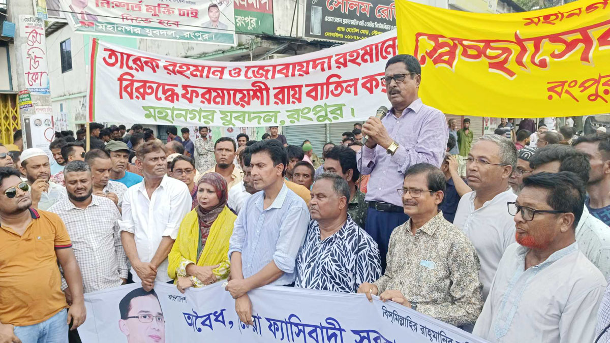 পরে দলীয় কার্যালয়ের সম্মুখ সড়কে অনুষ্ঠিত সমাবেশে প্রধান অতিথি হিসেবে বক্তব্য দেন বিএনপির চেয়ারপার্সনের উপদেষ্টামণ্ডলীর সদস্য ফজলুর রহমান। বিশেষ অতিথি হিসেবে উপস্থিত ছিলেন বিএনপির সহ-সাংগঠনিক সম্পাদক (রংপুর বিভাগ) আব্দুল খালেক। এতে মহানগর বিএনপির আহ্বায়ক সামসুজ্জামান সামু সভাপতিত্ব করেন। পুরো সমাবেশ সঞ্চালনা করেন মহানগরের সদস্য সচিব অ্যাডভোকেট মাহফুজ উন-নবী ডন।