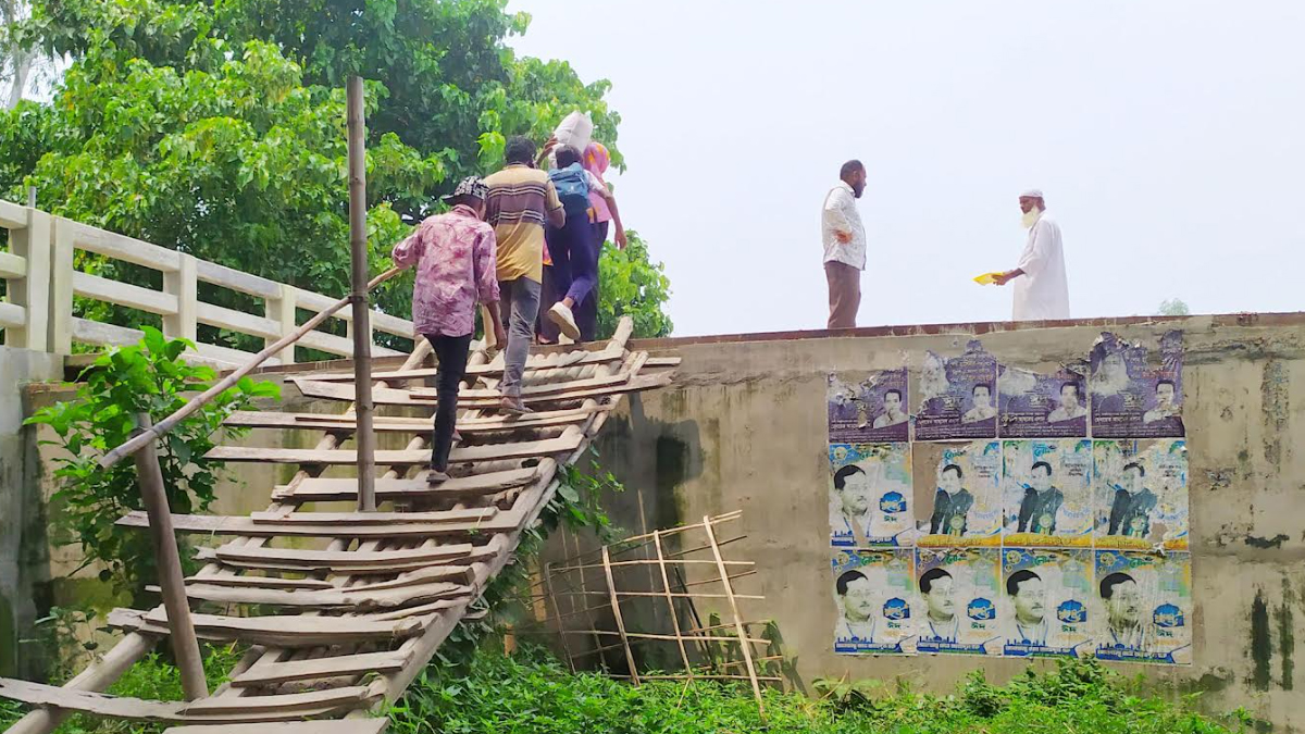 মই বেয়ে উঠতে হয় ৭ কোটি টাকার সেতুতে!