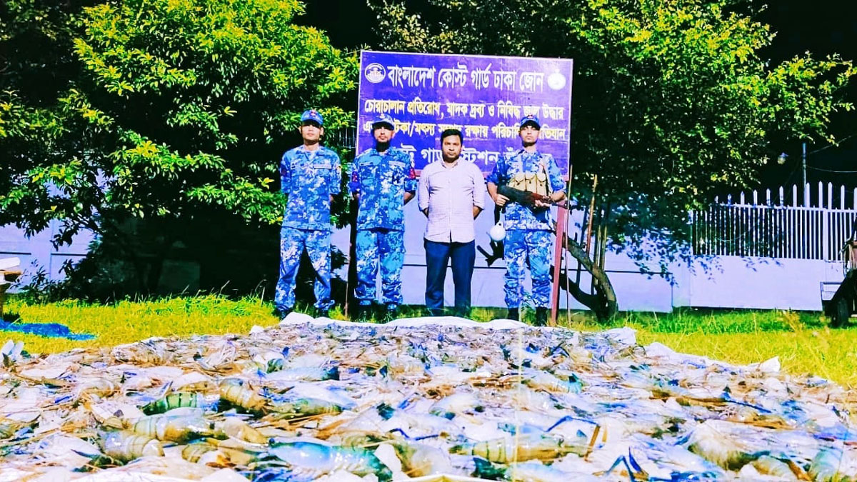 তিনি জানান, গোপন সংবাদের ভিত্তিতে আজ ভোরে চাঁদপুর কোস্ট গার্ড স্টেশনের সদস্যরা চাঁদপুর সদর উপজেলার হরিনা ফেরিঘাট এলাকায় অভিযান পরিচালনা করে। অভিযানে সাতক্ষীরা থেকে চট্টগ্রামগামী দুইটি যাত্রীবাহী বাস তল্লাশি করে আনুমানিক চার হাজার পাঁচ শ কেজি বিষাক্ত জেলি পুশকৃত চিংড়ি জব্দ করা হয়। এ সময় চিংড়ির প্রকৃত মালিক খুঁজে না পাওয়ায় কাউকে আটক করা সম্ভব হয়নি।