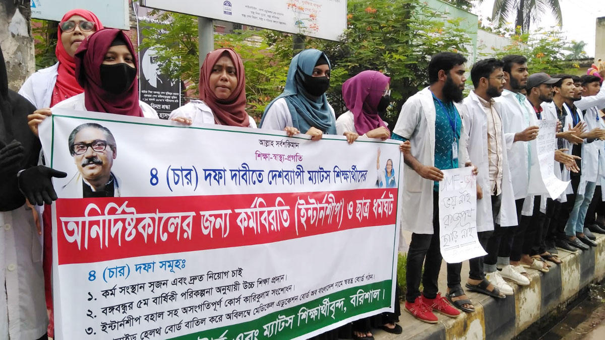 অন্যদিকে শিক্ষার্থীদের আন্দোলনে একাত্মতা পোষণ করে বরিশাল সদর হাসপাতালের ইন্টার্ন ডিপ্লোমা চিকিৎসকরা কর্মবিরতির ঘোষণা দিয়েছেন। তারা ইন্টার্নশিপ বহালসহ নতুন তৈরি করা কারিকুলাম সংশোধনসহ চার দফা দাবিতে ঐকমত্য পোষণ করেন।