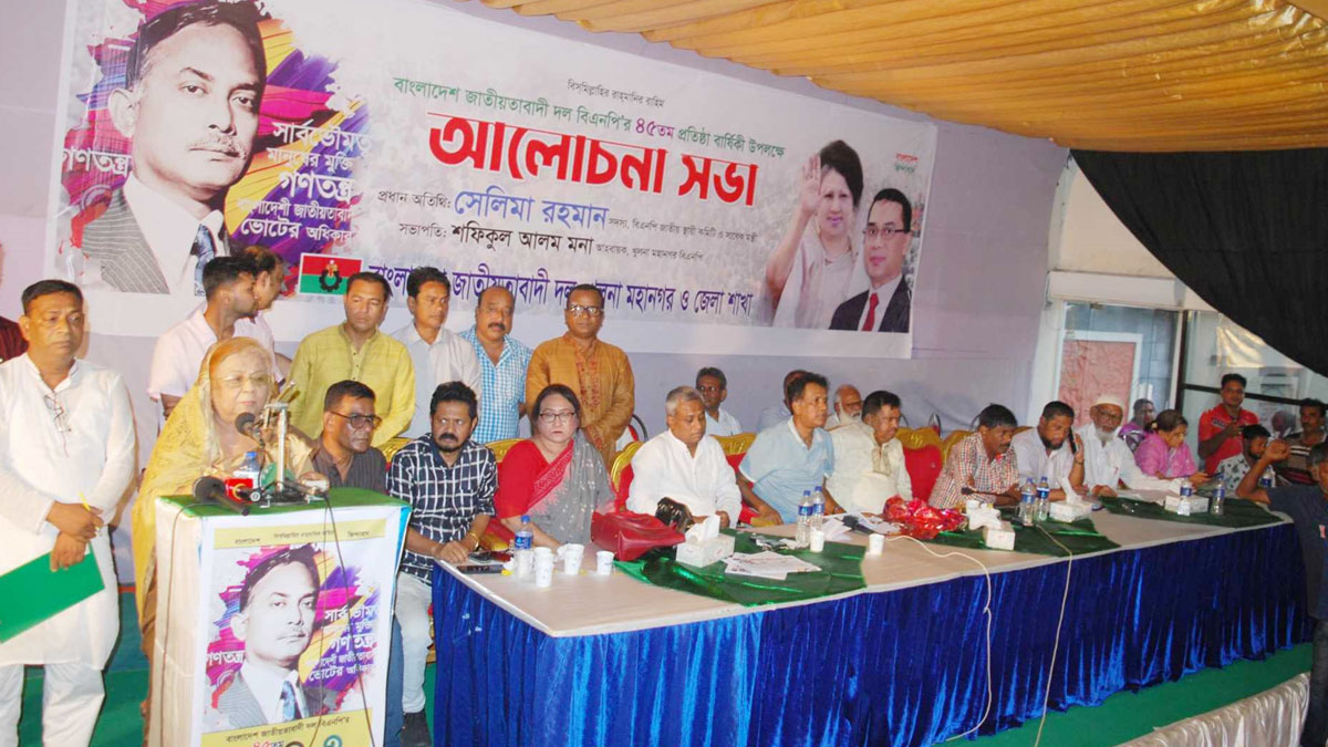 বিএনপির ৪৫তম প্রতিষ্ঠাবার্ষিকী উপলক্ষ্যে রোববার (৩ সেপ্টেম্বর) বিকেলে খুলনা প্রেসক্লাবের ব্যাংকুয়েট হলে আলোচনা সভায় প্রধান অতিথির বক্তব্যে সেলিমা রহমান এসব কথা বলেন।