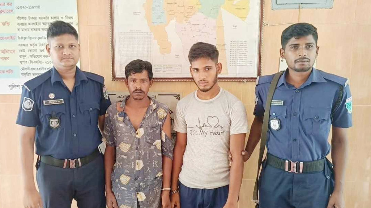 গ্রেপ্তারকৃতরা হলেন- শ্রীমঙ্গলের নওয়াগাঁও গ্রামের আদর করের ছেলে মিঠু কর (২০) ও পরেশ করের ছেলে পলাশ কর (২২)।