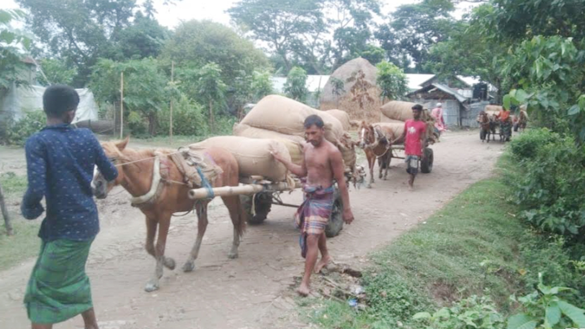 স্থানীয় ধান ব্যবসায়ী আবুল কালাম বলেন, গ্রামের কাঁচা রাস্তায় যান্ত্রিক গাড়ি দিয়ে পণ্য বা মালামাল পরিবহন করা খুবই কষ্টের। তবে ঘোড়ার গাড়ি ব্যবহার করে এসব পরিবহন করা কিছুটা সহজ। তাই গ্রামের কৃষকদের বাড়ি থেকে ধান সংগ্রহ করে ঘোড়ার গাড়ি দিয়ে বাজারে নিয়ে আসতে অনেক সুবিধা হয়। এতে ভাড়াও অনেকটা কম লাগে।