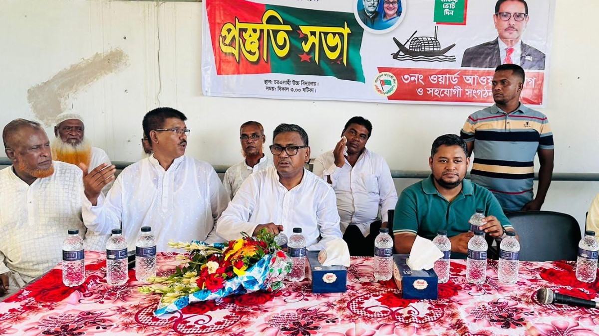 প্রস্তুতি সভায় উপজেলা আওয়ামী লীগের সাধারণ সম্পাদক মিজানুর রহমান বাদলসহ উপজেলা ও চর এলাহী ইউনিয়ন আওয়ামী লীগ, যুবলীগ, ছাত্রলীগ ও অঙ্গসংগঠনের নেতাকর্মীরা উপস্থিত ছিলেন।