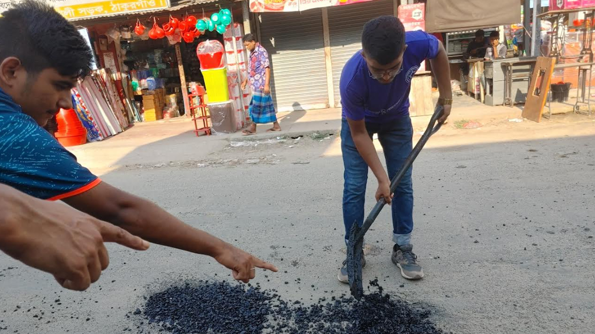 ছাত্রের সঙ্গে কথা বলে জানা গেছে, দীর্ঘদিন সংস্কারের অভাবে রাস্তাটির বিভিন্ন জায়গায় গর্ত হয়ে গেছে। বৃষ্টি হলে রাস্তায় কাদা-পানি জমে যায়, রাস্তা দিয়ে যাওয়ার উপায় থাকে না। জনপ্রতিনিধিরা সংস্কার করে না, তাই নিজ উদ্যোগে আমরা সংস্কারে নেমেছি।