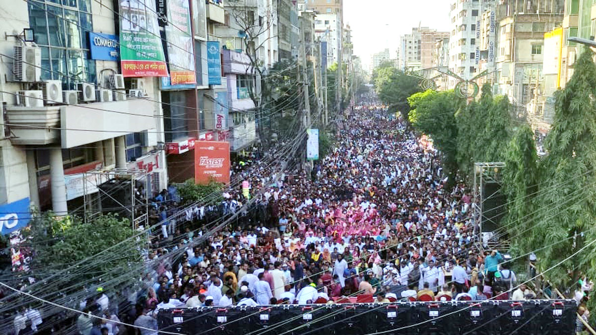 সরেজমিনে দেখা যায়, নারায়ণগঞ্জের ২ নম্বর রেলগেট থেকে চাষাঢ়া ছাড়িয়ে শুধু মানুষ আর মানুষ। সমাবেশ শুরু হওয়ার পরও কিছুক্ষণ পরপর আসছে মিছিল। প্রত্যেকটি মিছিলেই নেতাকর্মীদের ঢল। এক এক আসা সব মিছিলের জনস্রোতে সমাবেশস্থল জনসমুদ্রে পরিণত হয়।