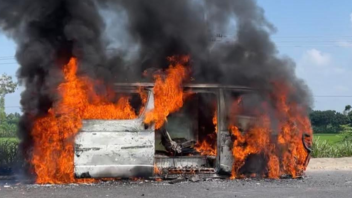 বিএনপির কর্মী বোঝাই মাইক্রোবাসে দুর্বৃত্তের আগুন