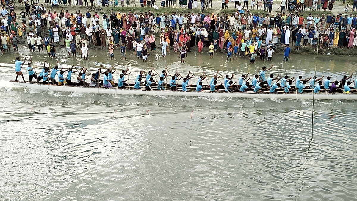 রংপুরে নৌকা বাইচ উৎসবে মানুষের ঢল