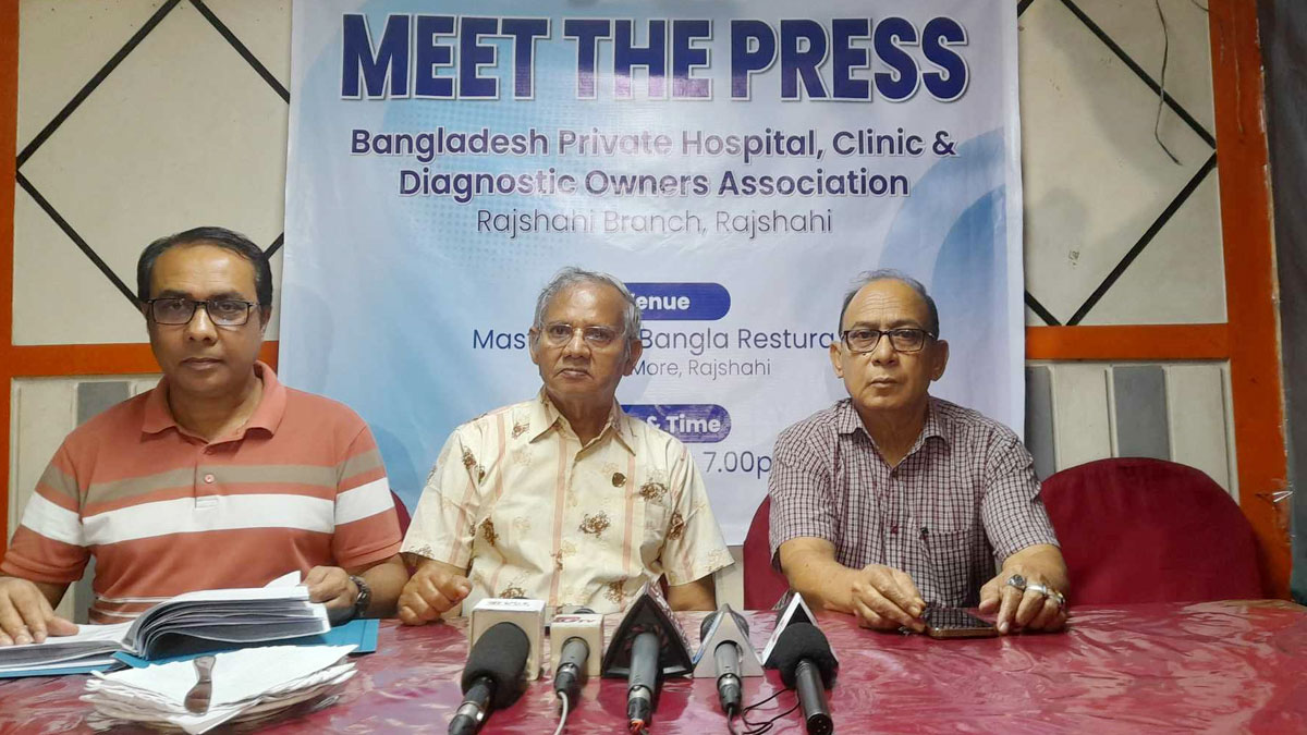 বুধবার (২০ সেপ্টেম্বর) সন্ধ্যায় সংবাদ সম্মেলন করেন বাংলাদেশ প্রাইভেট ক্লিনিক, হসপিটাল অ্যান্ড ডায়াগনস্টিক ওনার্স অ্যাসোসিয়েশনের রাজশাহী শাখার নেতৃবৃন্দ। এ সময় তারা এ কর্মসূচি ঘোষণা করেন।