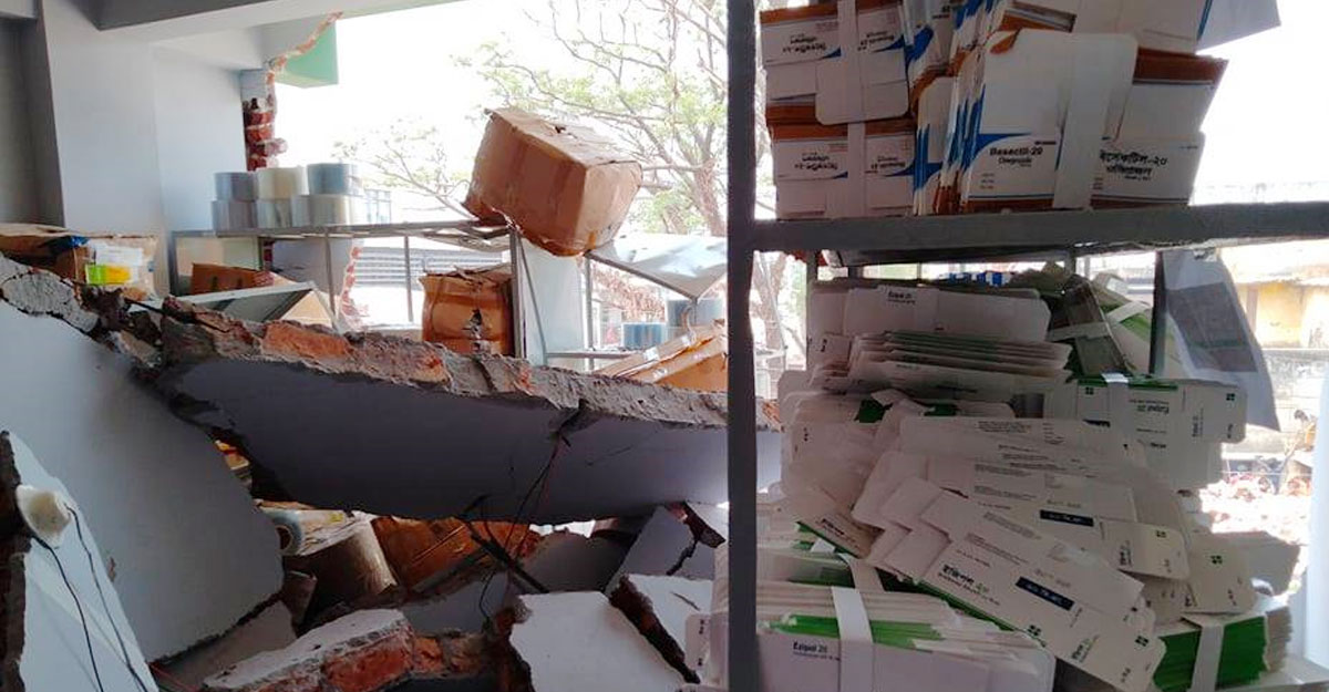 ওষুধ কারখানায় বিস্ফোরণে দেয়াল ভেঙে গেছে