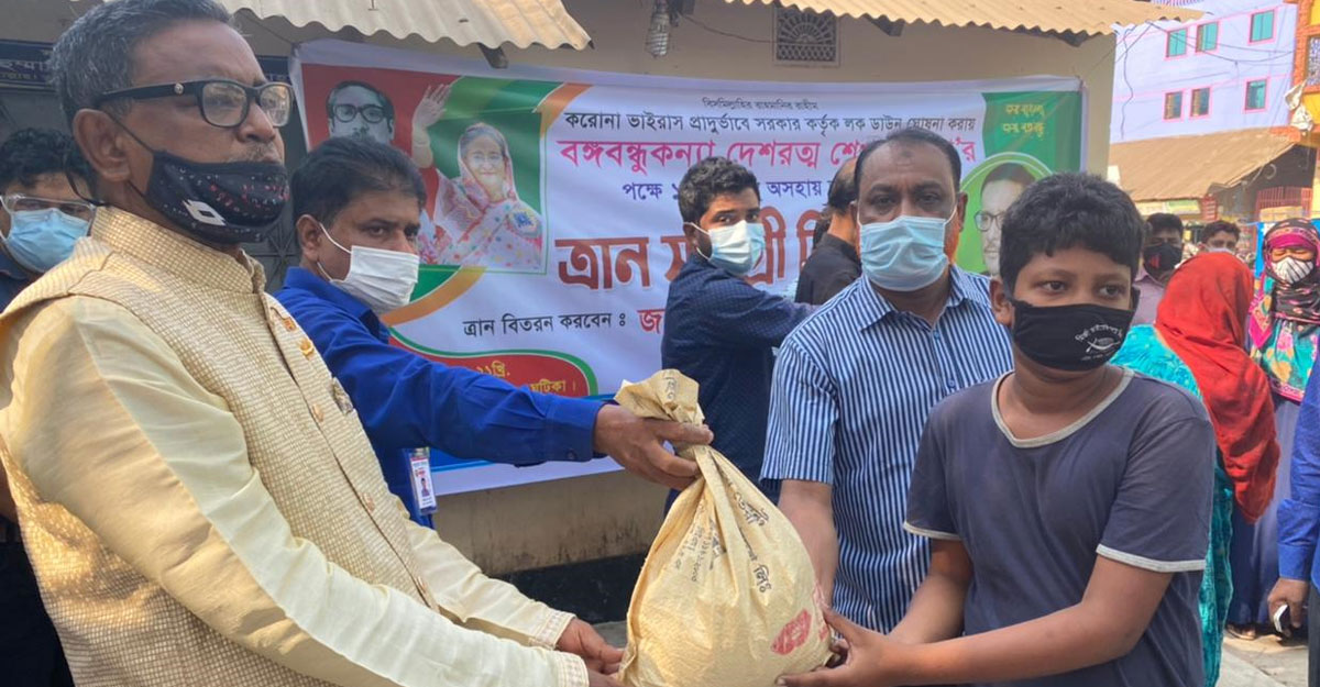 এসময় তিনি বলেন, সারাদেশে করোনাভাইরাস ব্যাপকভাবে বৃদ্ধি পাওয়ায় প্রধানমন্ত্রী শেখ হাসিনার নির্দেশে এক সপ্তাহের লকডাউন চলছে। বঙ্গবন্ধু কন্যা প্রধানমন্ত্রী শেখ হাসিনার পক্ষে গরিব অসহায় খেটে খাওয়া মানুষের মাঝে ত্রাণ বিতরণ কার্যক্রম শুরু করছি।