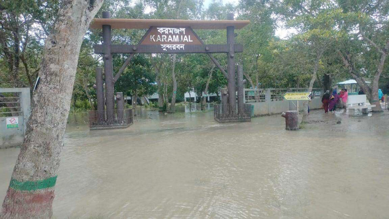 সুন্দরবনের করমজল বন্যপ্রাণী প্রজনন কেন্দ্রের ভারপ্রাপ্ত কর্মকর্তা হাওলাদার আজাদ কবির বলেন, জোয়ারের পানিতে করমজল বন্যপ্রাণী প্রজনন কেন্দ্রের রাস্তাসহ বিভিন্নস্থান পানিতে প্লাবিত হয়েছে। তবে প্রজনন কেন্দ্রের শেডে থাকা হরিণ, কুমির ও বিলুপ্তপ্রায় প্রজাতির বাটাগুর বাচ্চা কচ্ছপগুলো নিরাপদ রয়েছে।তবে পানি আরও বেশি বৃদ্ধি পেলে প্রাণীগুলোর ক্ষতি হওয়ার আশঙ্কা রয়েছে। শুধু করমজল নয়, সুন্দরবনের আরও কিছু এলাকা প্লাবিত হয়েছে বলে জানান তিনি।