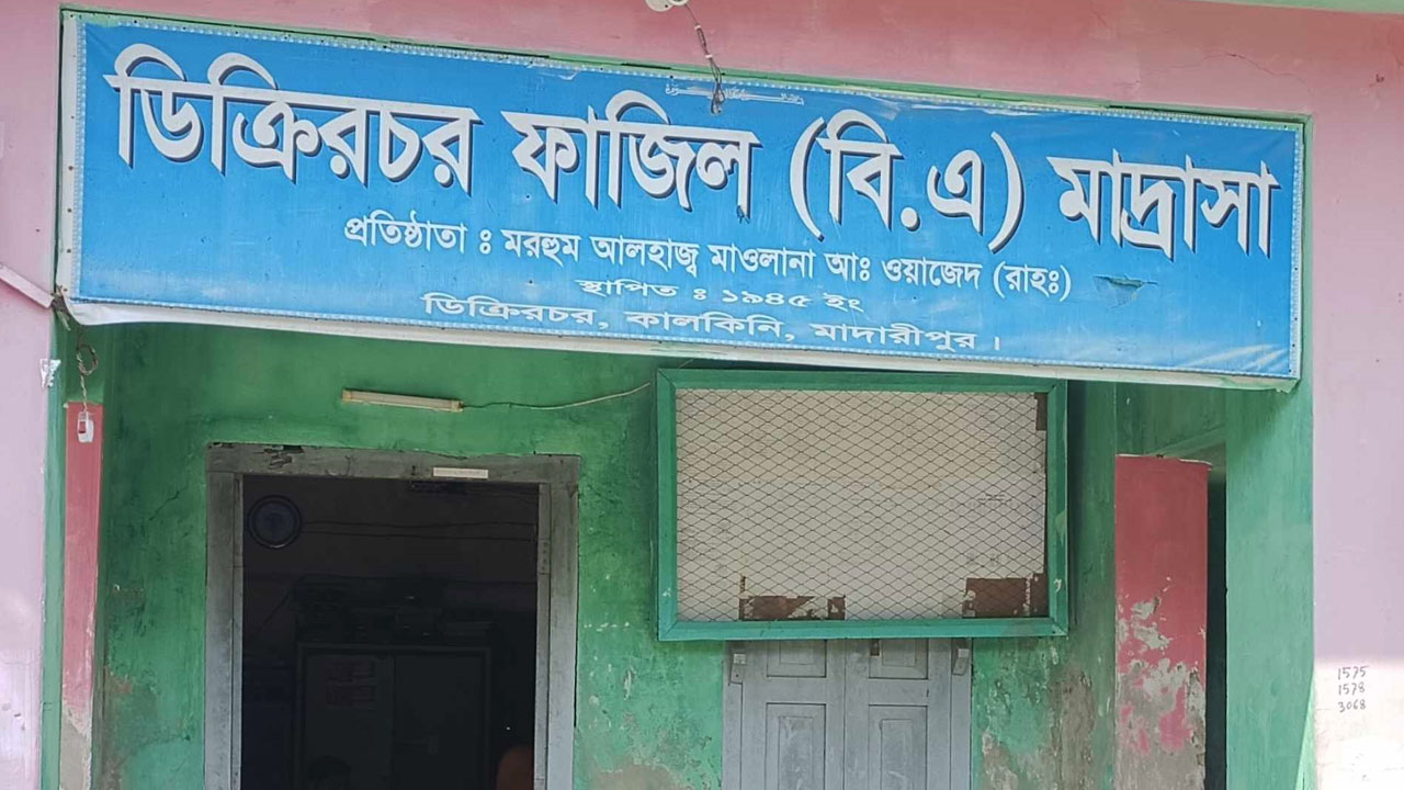 মাদারীপুরের কালকিনিতে শিক্ষকের স্ত্রীর স্বীকৃতি দাবিতে মাদ্রাসায় অবস্থান নিয়েছেন এক নারী। রোববার (১ অক্টোবর) দুপুরে উপজেলার ডিক্রিরচর ফাজিল (বিএ) মাদ্রাসায় অবস্থান নেন তিনি। স্ত্রীর স্বীকৃতি না পেয়ে ওই শিক্ষাপ্রতিষ্ঠানসহ উপজেলা ও জেলা পর্যায়ের বিভিন্ন সরকারি দপ্তরে লিখিত অভিযোগ দিয়েছেন।