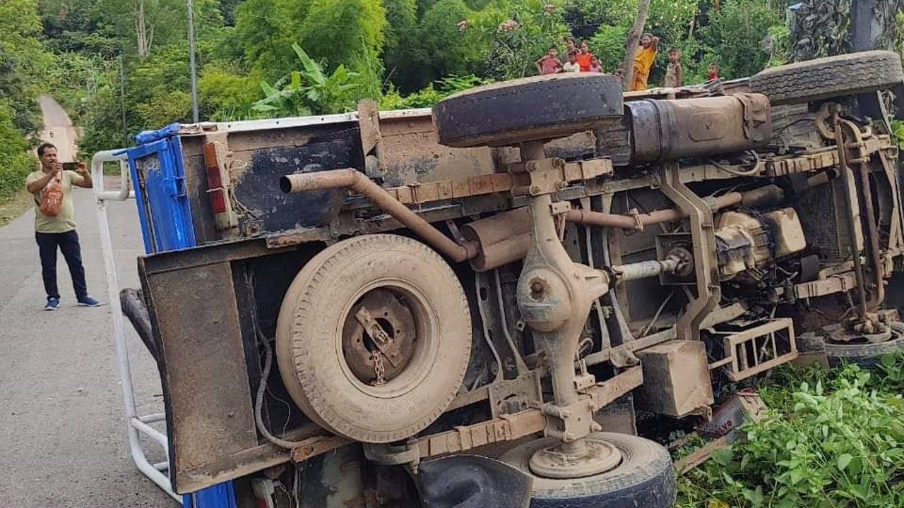 স্থানীয় সূত্রে জানা যায়, সাজেক থেকে ফেরার পথে সাজেক-বাঘাইহাট সড়কের একুইজ্জ্যাছড়ি এলাকায় পর্যটকবাহী একটি পিকআপ (ফেনী মেট্রো-০২০০৮) নিয়ন্ত্রণ হারিয়ে উল্টে যায়। এতে গাড়িতে থাকা ১২ জন পর্যটক গাড়ি থেকে ছিটকে পড়ে আহত হন। আহতদের মধ্যে চারজনের অবস্থা গুরুতর।