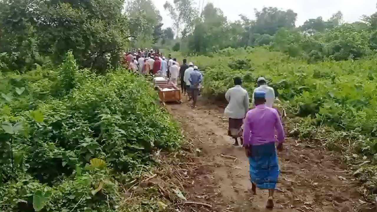 এর আগে মরদেহ দেখে কান্নায় ভেঙে পড়েন তাদের স্বজনরা। শেষবারের মতো তাদের দেখতে আশপাশের মানুষ ভিড় জমান সেখানে।