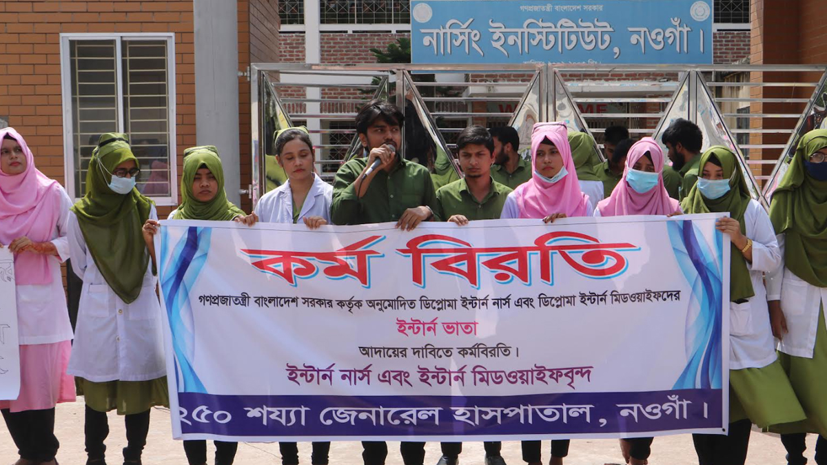 নওগাঁয় ইন্টার্ন নার্সদের কর্মবিরতিতে দুর্ভোগ বেড়েছে রোগীদের