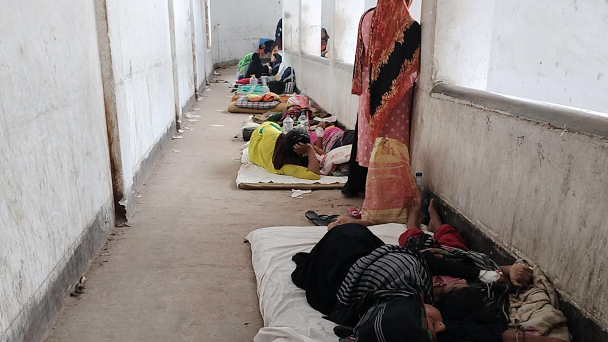গত ৮ দিন ধরে মোশরা বেগম নামে এক বৃদ্ধা তার অসুস্থ স্বামী নুরুল ইসলামকে নিয়ে পুরুষ ওয়ার্ডের সামনে মেঝেতে রয়েছেন। কিন্তু একটি বেড মেলেনি তাদের ভাগ্যে। এভাবে বিপুলসংখ্যক রোগী হাসপাতাল ভবনের বিভিন্নস্থানে মেঝেতে বিছানা করে চিকিৎসা নিচ্ছেন।