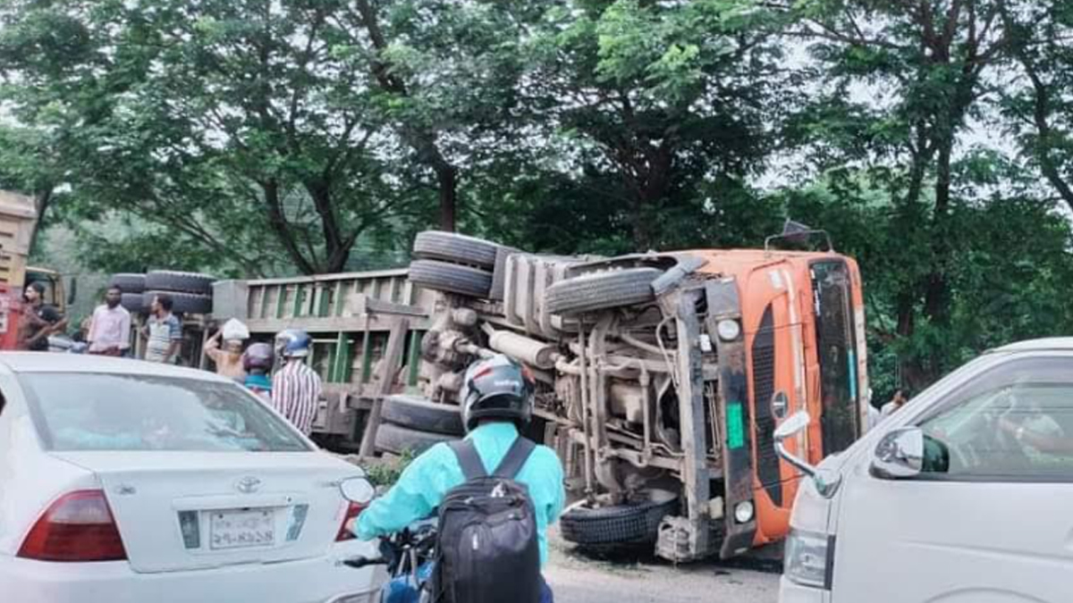 নিয়ন্ত্রণ হারিয়ে লরি উল্টে প্রাণ গেল চালকের