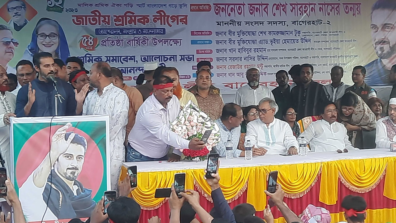জাতীয় শ্রমিক লীগ বাগেরহাট জেলা শাখার সভাপতি রেজাউর রহমান মন্টুর সভাপতিত্বে সমাবেশে আরও বক্তব্য দেন জেলা আওয়ামী লীগের সাধারণ সম্পাদক অ্যাডভোকেট ভুইয়া হেমায়েত উদ্দিন।