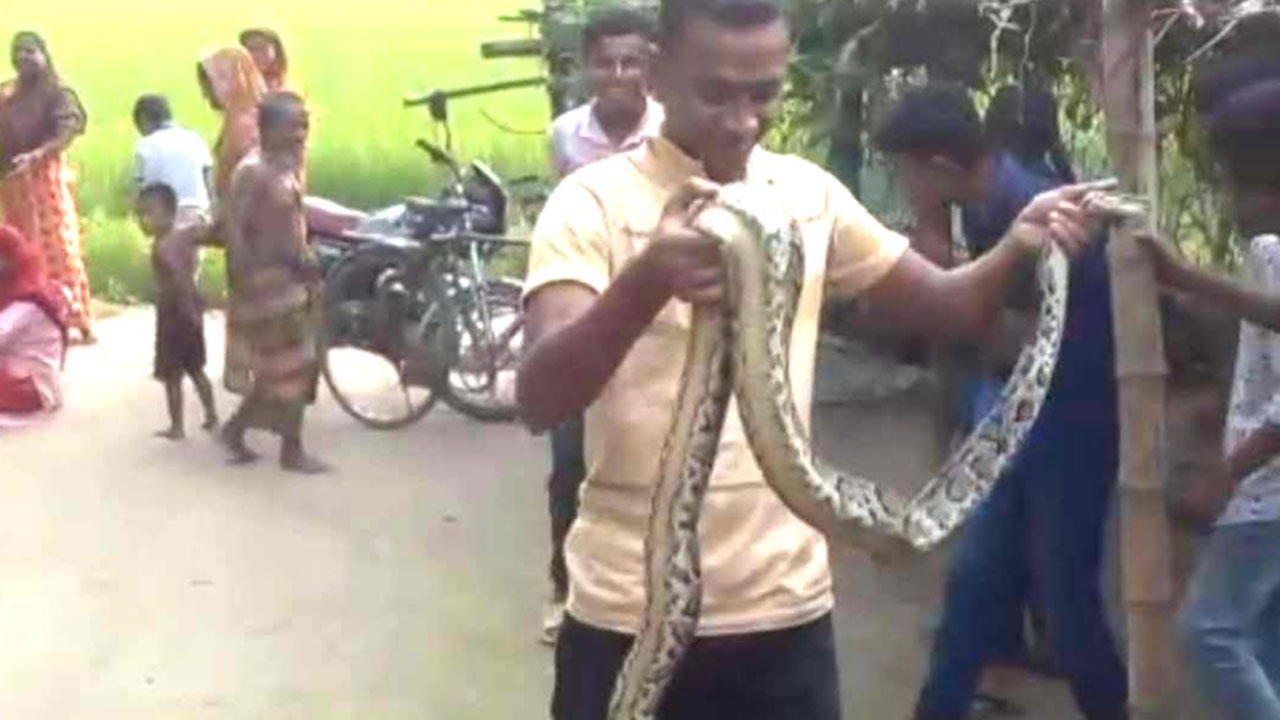 ধানক্ষেত থেকে ৮ ফুট লম্বা অজগর উদ্ধার