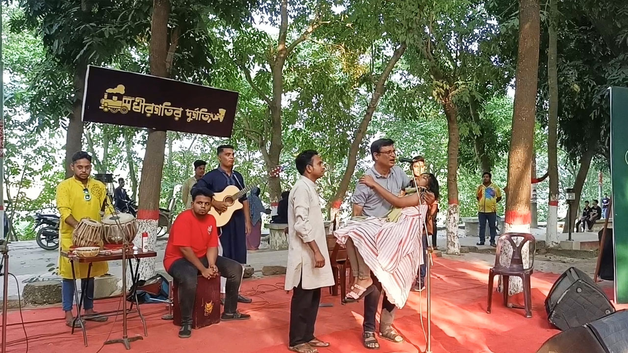 এরপর খায়রুল ইসলাম হীরকের নেতৃত্বে হিরন্ময় কালচারাল একাডেমির একদল শিল্লী গানে গানে নিজেদের আক্ষেপ তুলে ধরেন। ‘গাড়ি চলে না, গাড়ি চলে না’ গান দিয়ে শুরু করে বেশ কয়েকটি গান পরিবেশন করে দলটি। এরপর মিজান বাউলা, আফ্রিদ, শাহনাজ পারভীনসহ বেশ কয়েকজন শিল্পী একে একে পরিবেশন করেন গান।