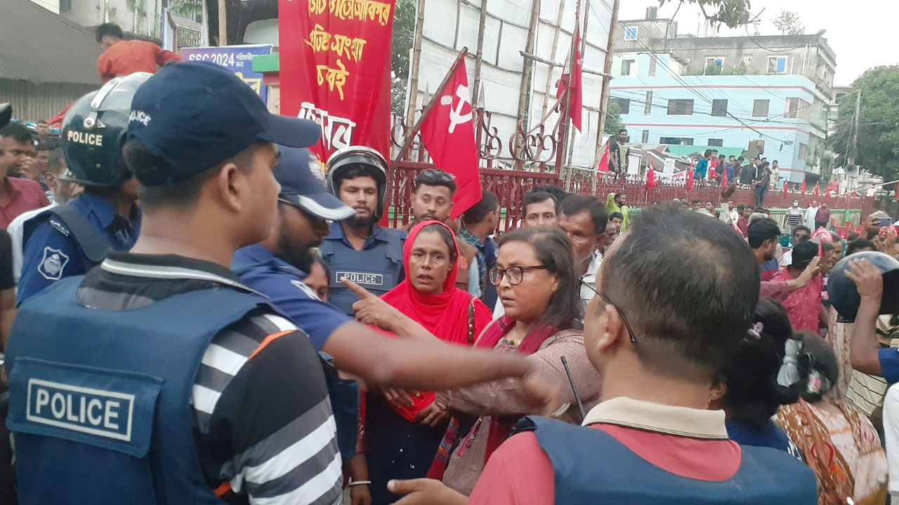 কমিউনিস্ট পার্টির নেতাকর্মীদের দাবি, সমাবেশ শেষে তারা দলীয় স্লোগান দিয়ে শহীদ মিনার থেকে বের হচ্ছিলেন। এ সময় পুলিশ তাদের ওপর হামলা চালায়। এতে সিপিবির কেন্দ্রীয় সভাপতি মোহাম্মদ শাহ আলম, কেন্দ্রীয় কমিটির সদস্য ডা. দীবালোক সিংহ, সদস্য জলি তালুকদার, জেলা কমিটির সভাপতি নলিনী কান্ত সরকারসহ কমপক্ষে ৩৫ জন নেতাকর্মী আহত হন। পুলিশ লাঠিচার্জ করে জেলা সিপিবির সম্পাদকমণ্ডলীর সদস্য মো. মোস্তফা কামাল ও জেলা ছাত্র ইউনিয়নের কোষাধ্যক্ষ আজিজুর রহমান সায়েমকে আটক করে নিয়ে যায়।