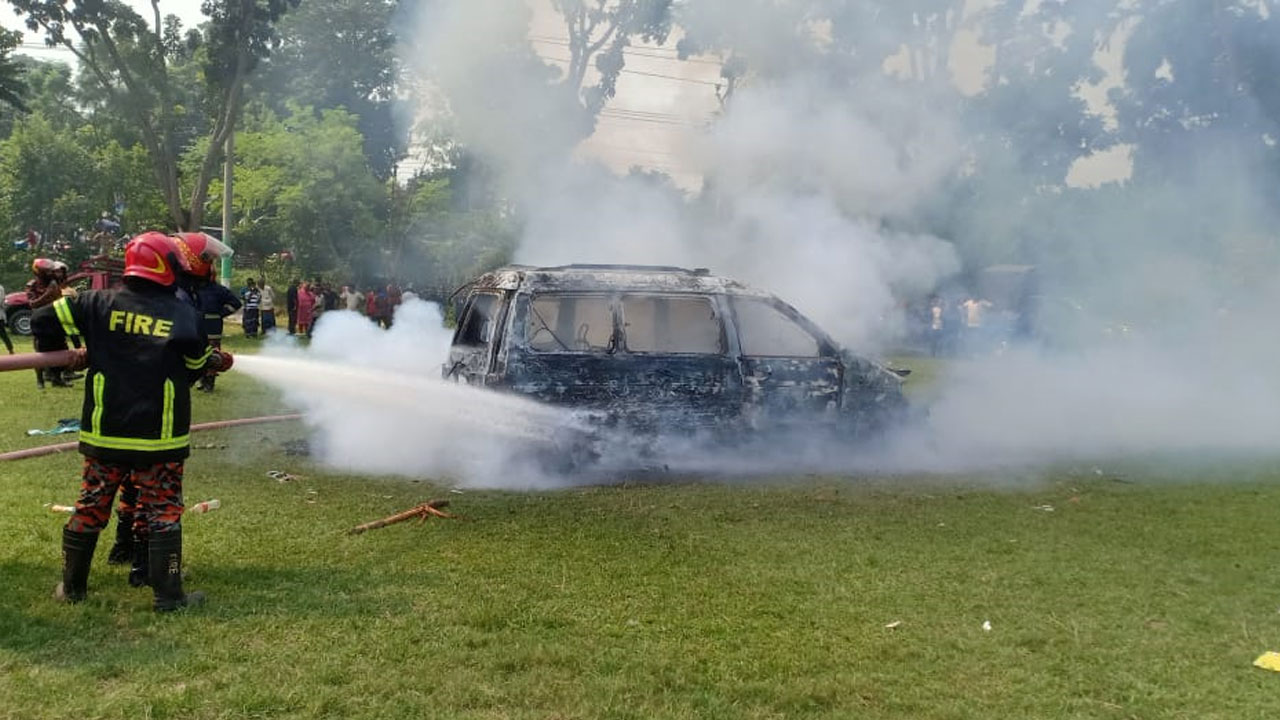 পৌর কাউন্সিলর কুদ্দুসুর রহমান বলেন, এলাকাবাসী ও শিক্ষার্থীরা মাইক্রোবাস চালক ও সহযোগীকে পিটুনি দেওয়ার সময় কে বা কারা মাইক্রোবাসটিতে আগুন ধরিয়ে দেয়। পরে ফরিদপুর থেকে ফায়ার সার্ভিসের একটি দল এসে আগুন নেভায়।