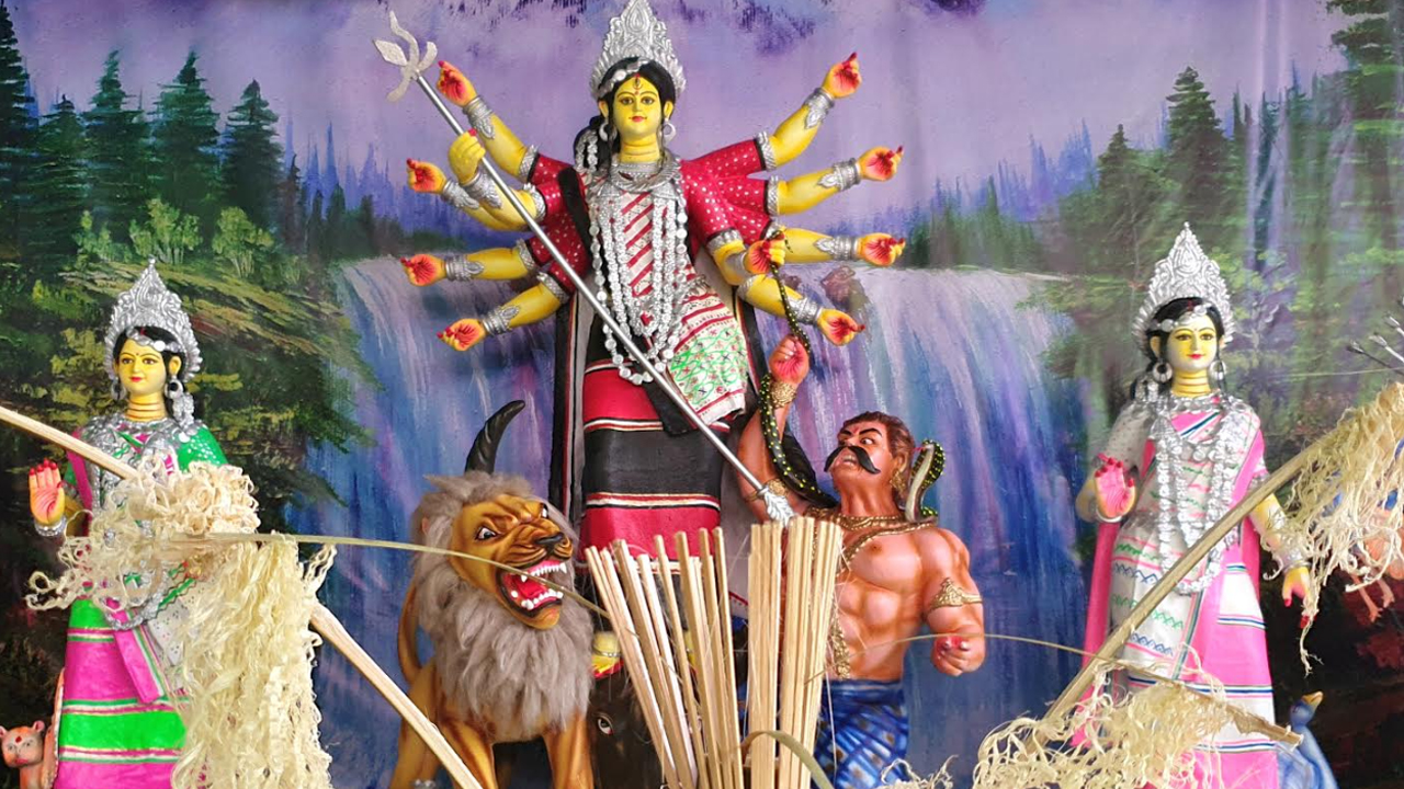 ত্রিপুরাদের ঐতিহ্যবাহী পোশাকে দেবী দুর্গা