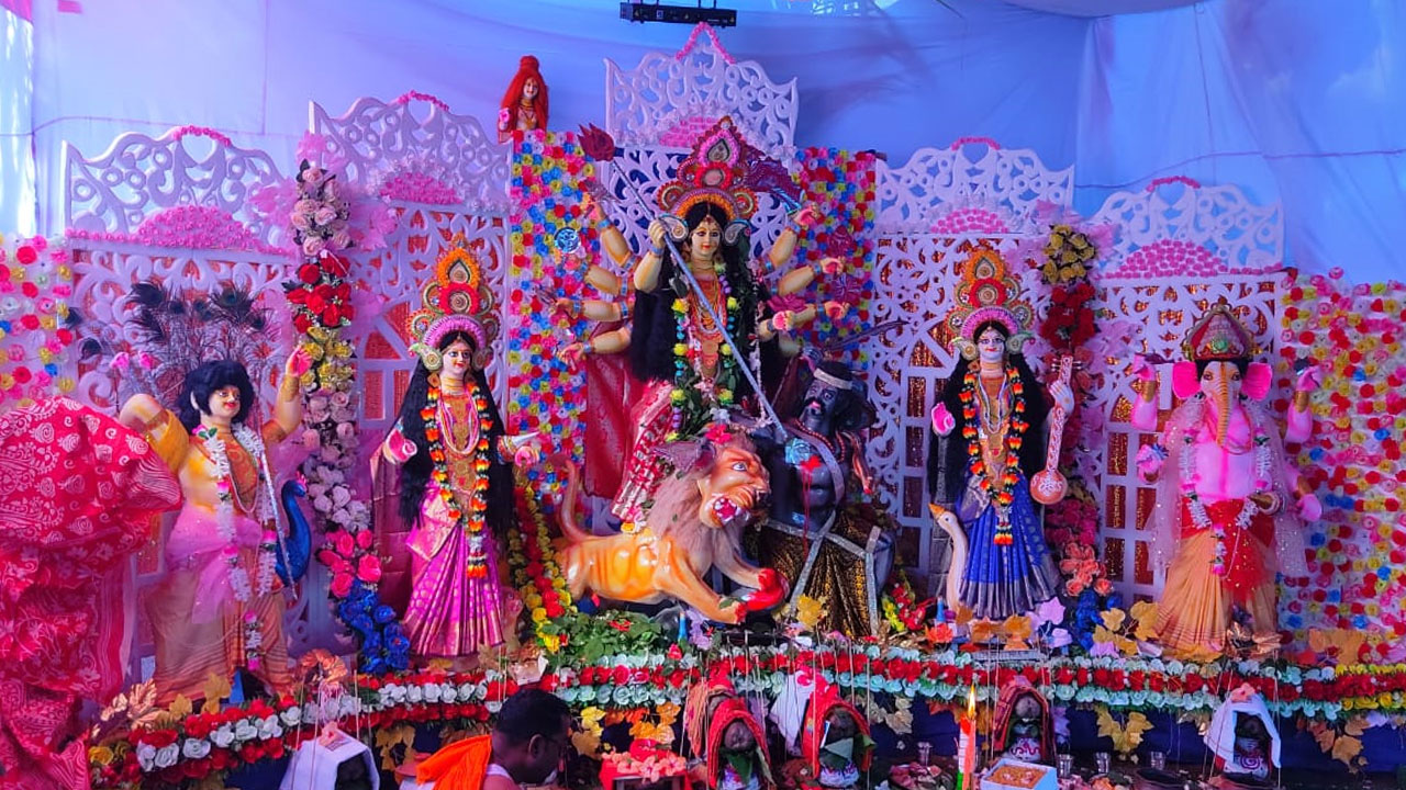 সরেজমিনে গিয়ে দেখা যায়, জাঁকজমকপূর্ণ আয়োজনে দেবী বন্দনায় ব্যস্ত সময় পার করেছেন সেখানের সনাতন ধর্মাবলম্বীরা। ধূপ, পঞ্চপ্রদীপ, উলুধ্বনি আর ঢাকের বাদ্যের সঙ্গে বাজছে শঙ্খনাদ। মণ্ডপে উচ্চারিত হচ্ছে পুরোহিতের মন্ত্রধ্বনি।