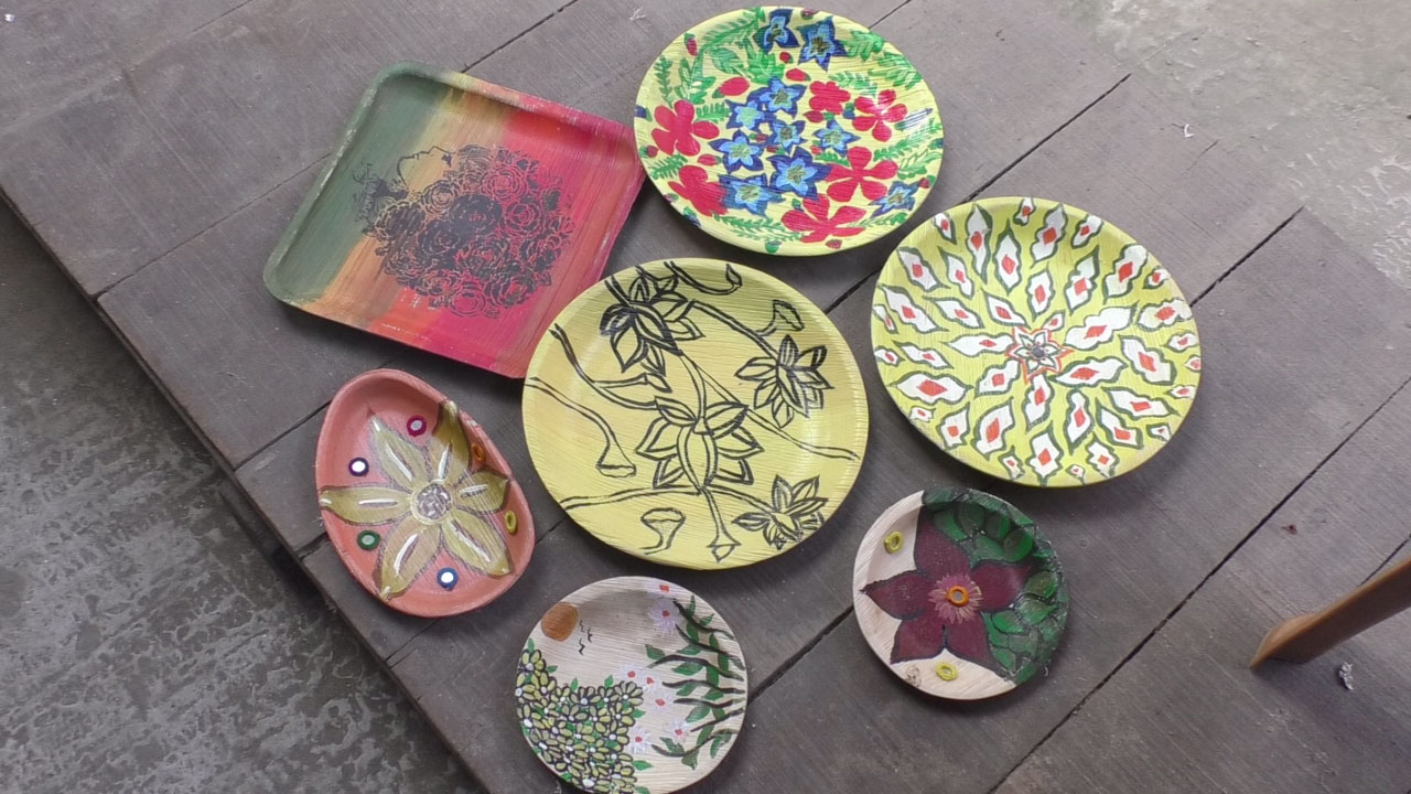 সুপারি পাতার খোলে তৈরি হচ্ছে বাহারি পণ্য