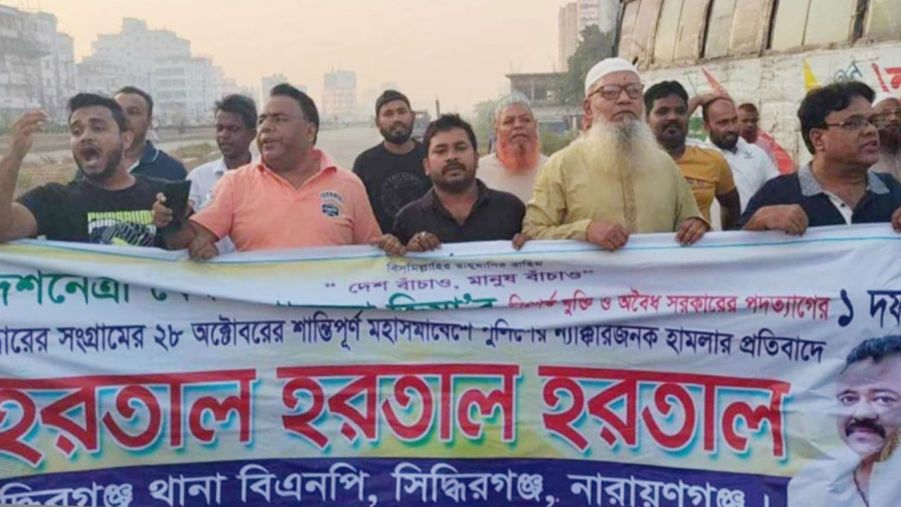 সকালে হরতালের সমর্থনে থানা বিএনপির সভাপতি মাজেদুল ইসলাম ও সাধারণ সম্পাদক ইকবাল কাউন্সিলরের নেতৃত্বে ১৬ জনের একটি মিছিল বের হয়। এ সময় ফতুল্লা থানা পুলিশ ও ডিবির একটি টিম তাদেরকে বাধা দেয় ও সাতজনকে আটক করে। তাদের মধ্যে ইকবালের ব্যক্তিগত গাড়িচালকও রয়েছেন।