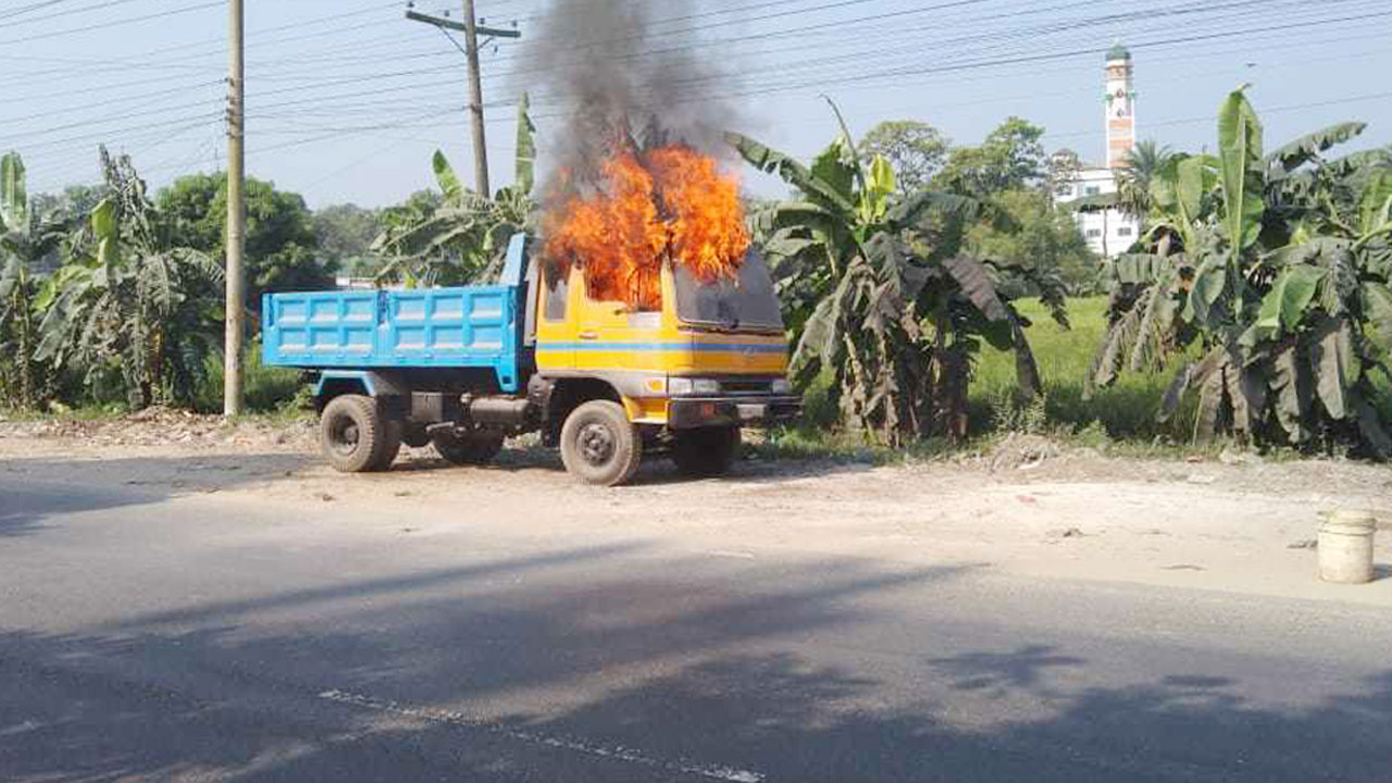 গাজীপুরে পিকআপে আগুন, বাস ভাঙচুর