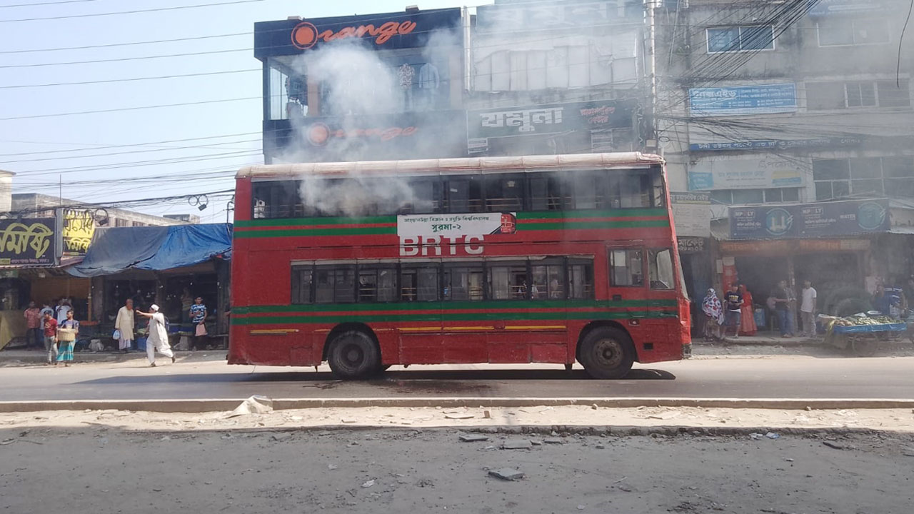 টঙ্গীতে বিআরটিসির দোতলা বাসে আগুন