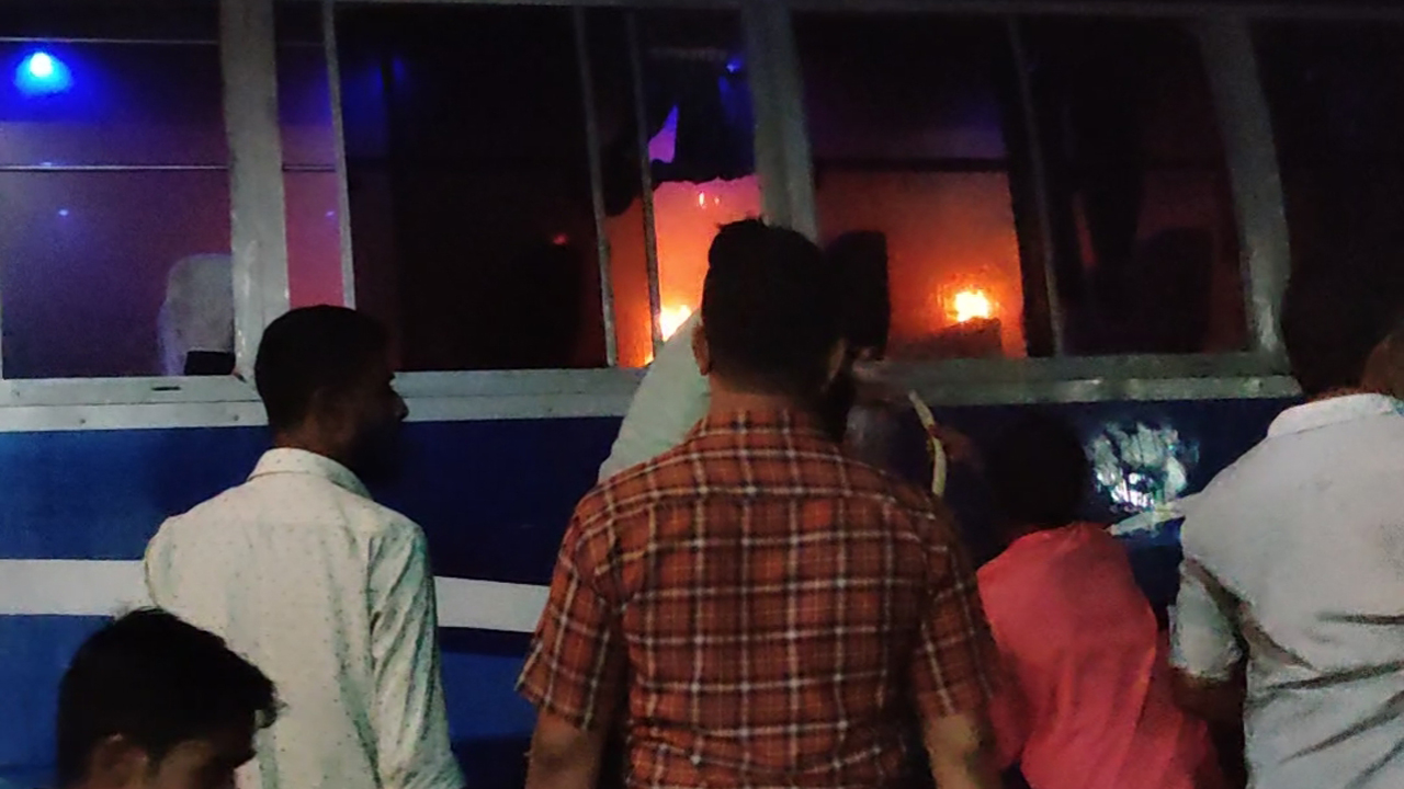 ঢাকা-ময়মনসিংহ মহাসড়কে পেট্রোল ঢেলে বাসে আগুন