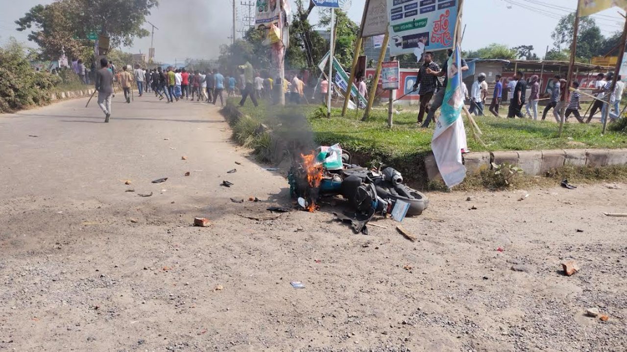 বগুড়ায় অবরোধে ৩ মোটরসাইকেলে আগুন, গাড়ি ভাঙচুর
