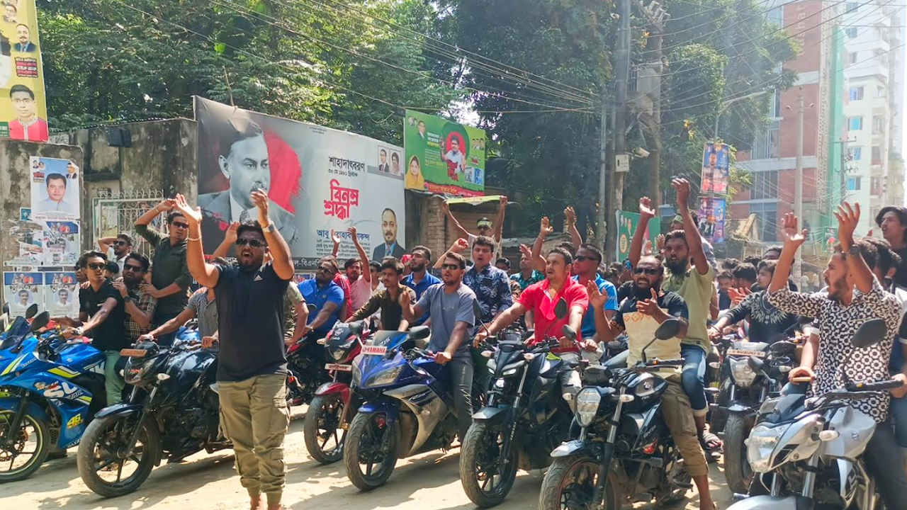সরেজমিনে দেখা যায়, নতুন বাজার এলাকায় বিএনপির কার্যালয় তালাবদ্ধ। কার্যালয়টির সামনে মোটরসাইকেল মহড়া দিচ্ছে যুবলীগ-ছাত্রলীগের নেতাকর্মীরা। এসময় বিএনপি-জামায়াত বিরোধী স্লোগান দেন তারা।